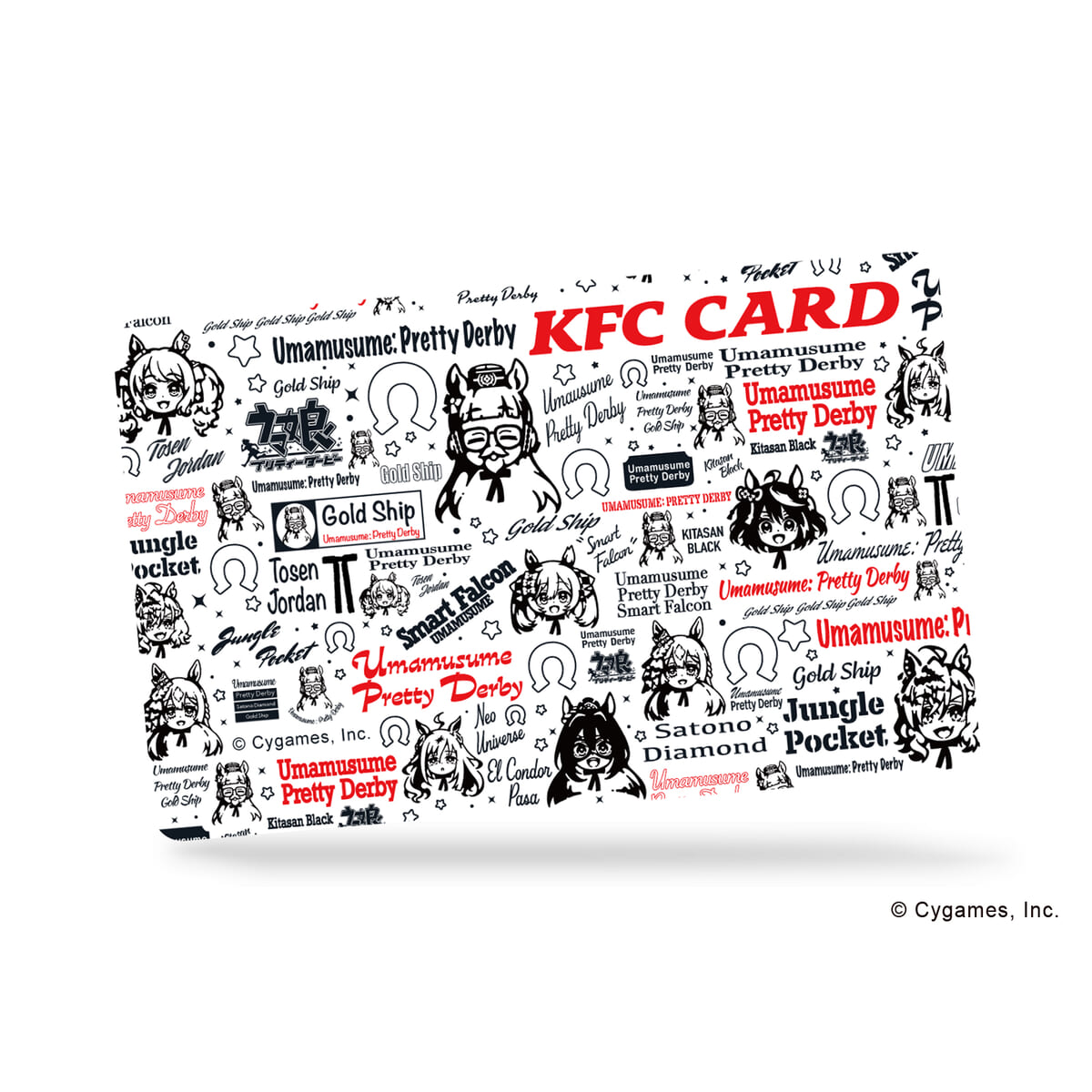 C賞の「コラボデザインKFCカード(500円分)」では、「サトノダイヤモンド」や「キタサンブラック」など、計8人がケンタッキーフライドチキンロゴ風に描かれた限定デザイン。