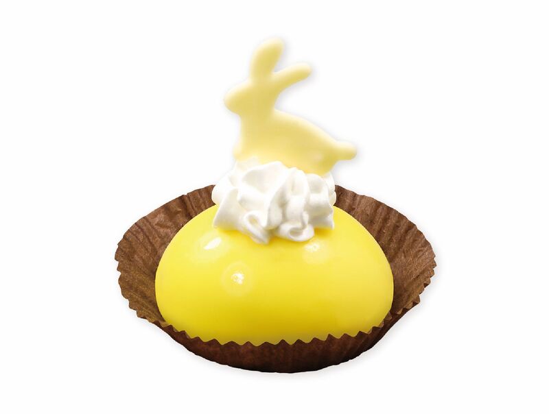ミルクムースの表面に黄色いグラサージュ(艶やかに仕上げるコーティング)を施した「月見ケーキ」は、月のような輝きを表現。