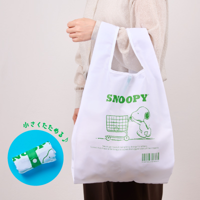 カートをひく「スヌーピー」を大きくプリントしたエコバッグ。
