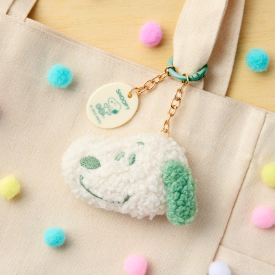 「スヌーピー」のお顔をデザインしたふわもこ素材のマスコットチャーム。