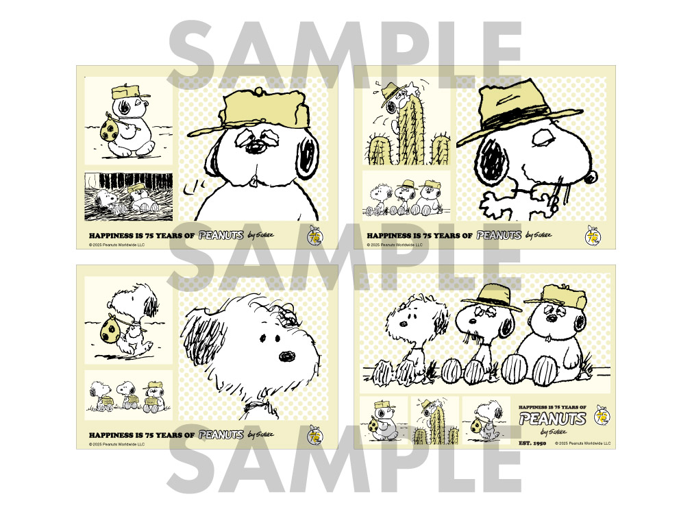 75周年アートや『ピーナッツ』コミック50年間にわたる各年代のイラストを使用した、ステッカーとしても利用できるシールが選択形式で発売されます。