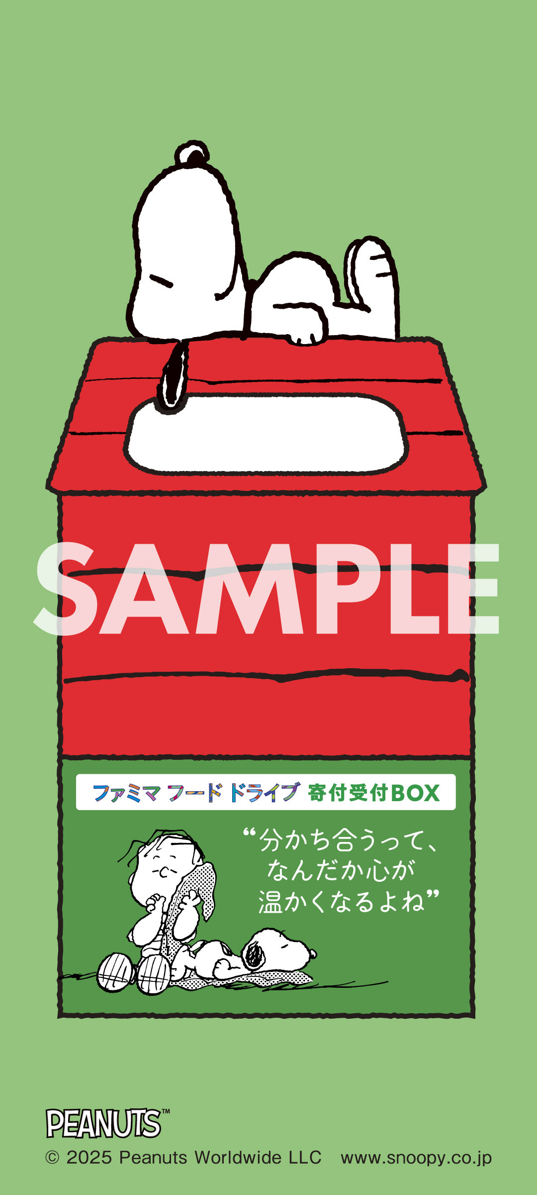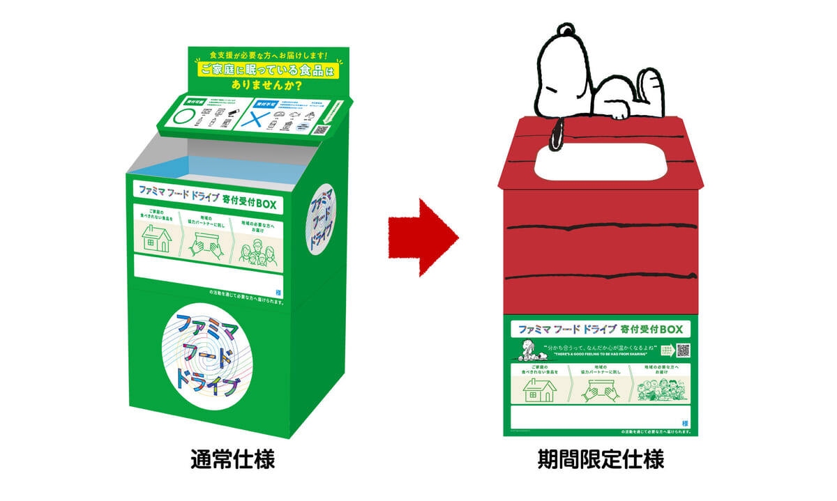 また、全国の「ファミマフードドライブ寄付受付BOX」設置店舗を対象に、期間中に食品を寄付し、アンケートに回答すると「スヌーピー」オリジナル壁紙が先着1,000名にもらえるキャンペーンも開催されます。