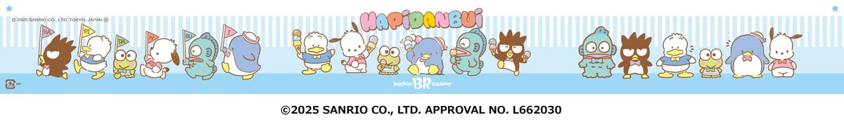 2025年に結成5周年を迎えた、株式会社サンリオの6にんの男のコで結成したユニット「はぴだんぶい」がサーティワンに初登場!