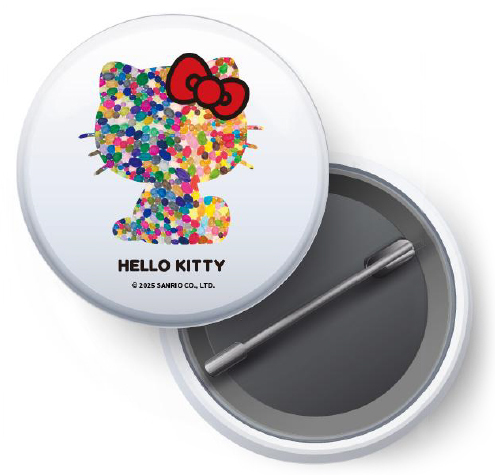 カラフルな「ハローキティ」のシルエットが目を引く缶バッジ。