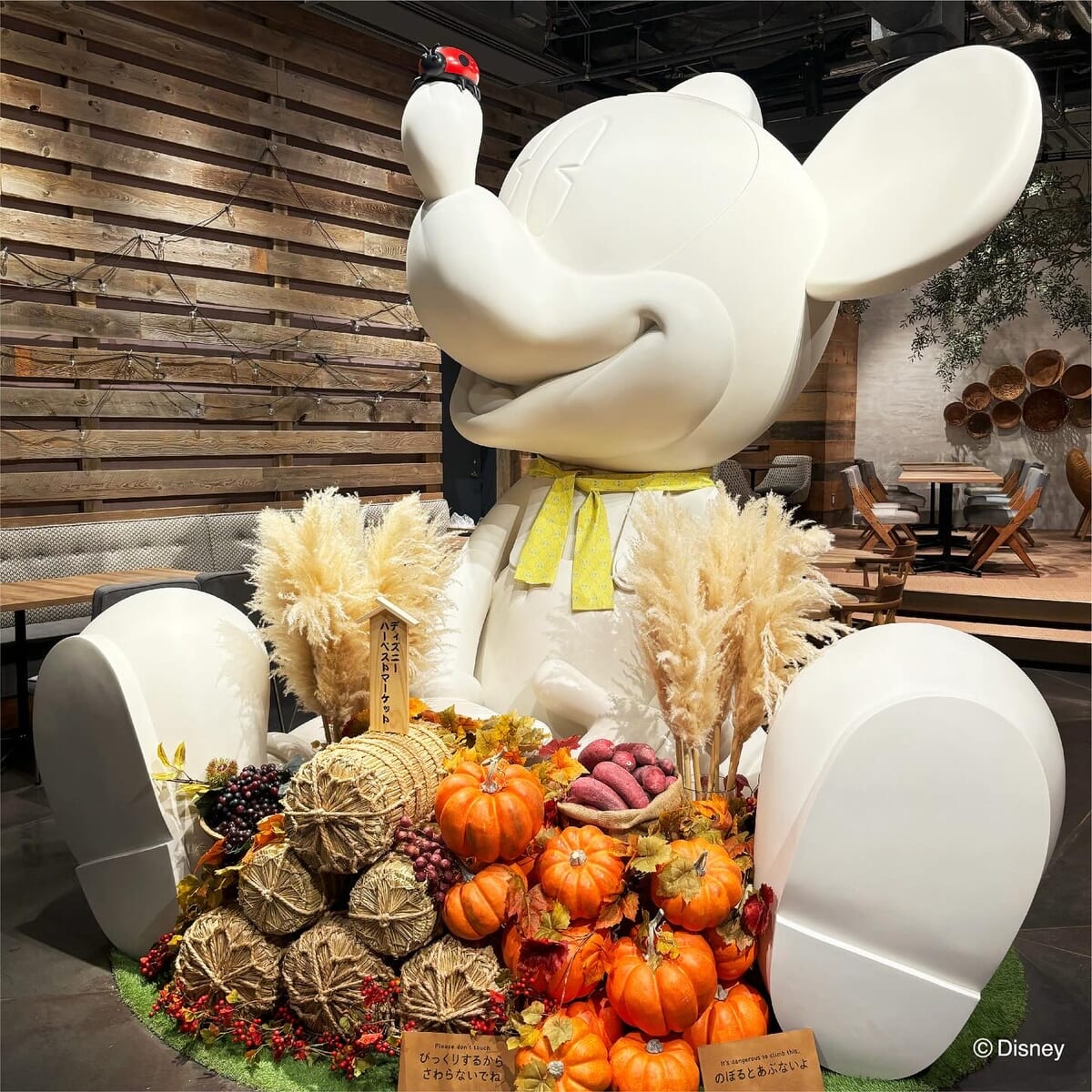 【期間限定】Disney HARVEST MARKETのシンボル、ミッキーマウスをイメージした巨大スタチューは実りの秋のディスプレイに