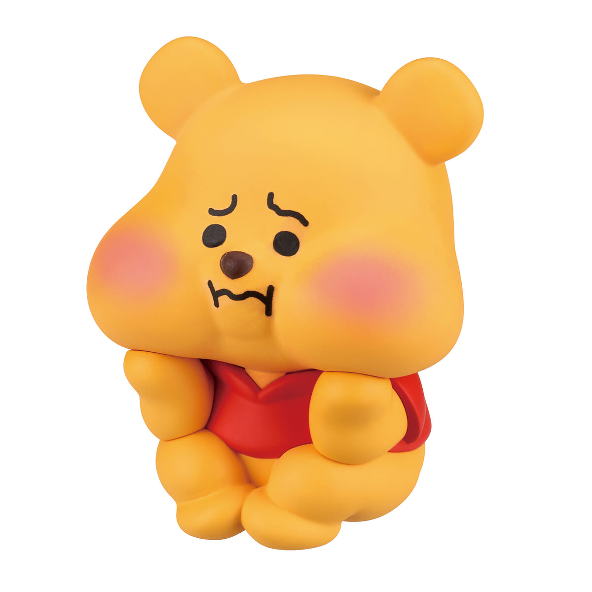 大きな“ほっぺた”を両手に乗せて座っている姿で絶妙な“すね顔”をしており、「ミッキーマウス」「ミニーマウス」「プー」「ディズニー スティッチ」の4種類がシリーズ第1弾として登場します。
