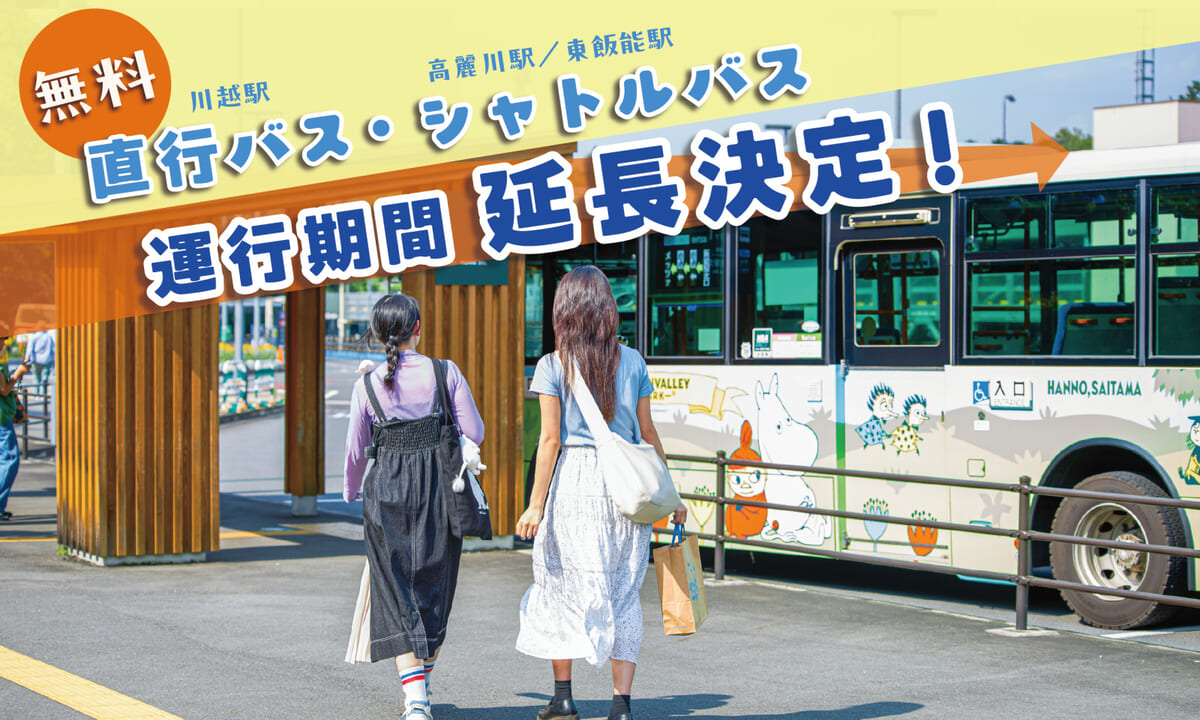 期間限定で毎日運行中の「川越駅⇔メッツァ」間の無料直行バス(要予約)、「高麗川駅・東飯能駅⇔メッツァ」間の無料シャトルバスの運行が延長決定。