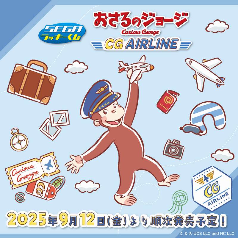 セガ ラッキーくじ「おさるのジョージ CG AIRLINE」は2025年9月12日より順次、ローソンやミニストップ、各種ホビーショップなどで発売中です☆