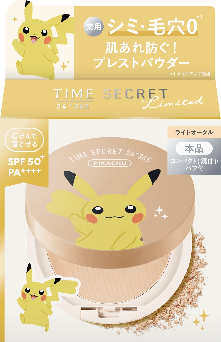 ミネラルコスメブランド「タイムシークレット」初となる、ポケモンデザインのフェイスパウダーと化粧下地が登場。