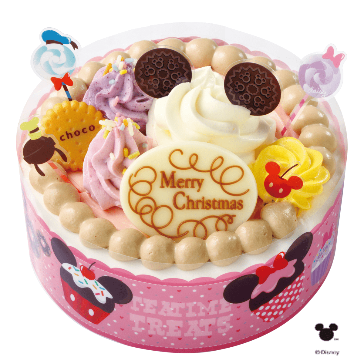 ケーキには「ミッキーマウス」や「ミニーマウス」「ドナルドダック」「デイジーダック」「グーフィー」をイメージしたキャラクターピック付き。