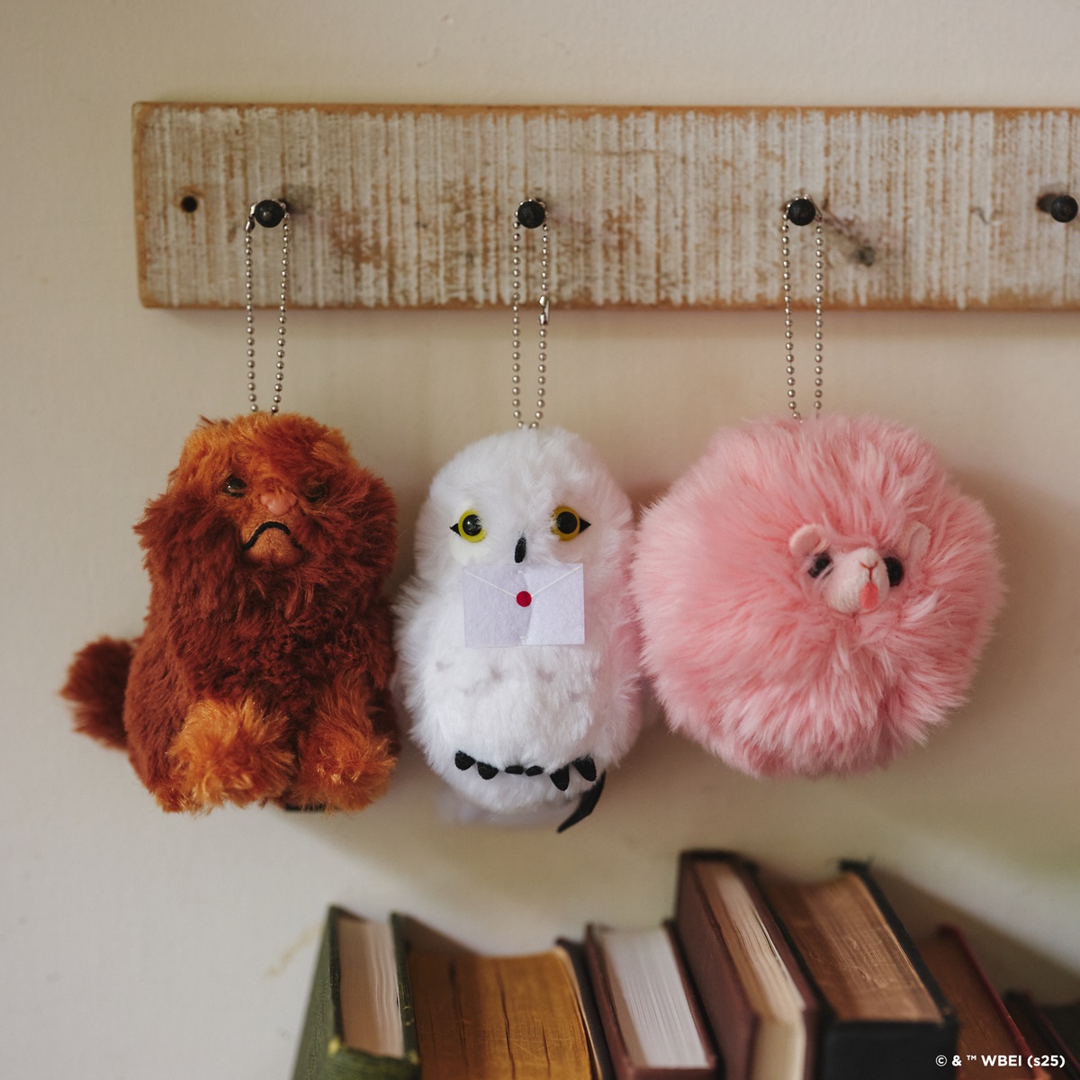 ふんわり素材を使用したぬいぐるみキーチャームで、愛嬌あるキャラクターたちを再現。