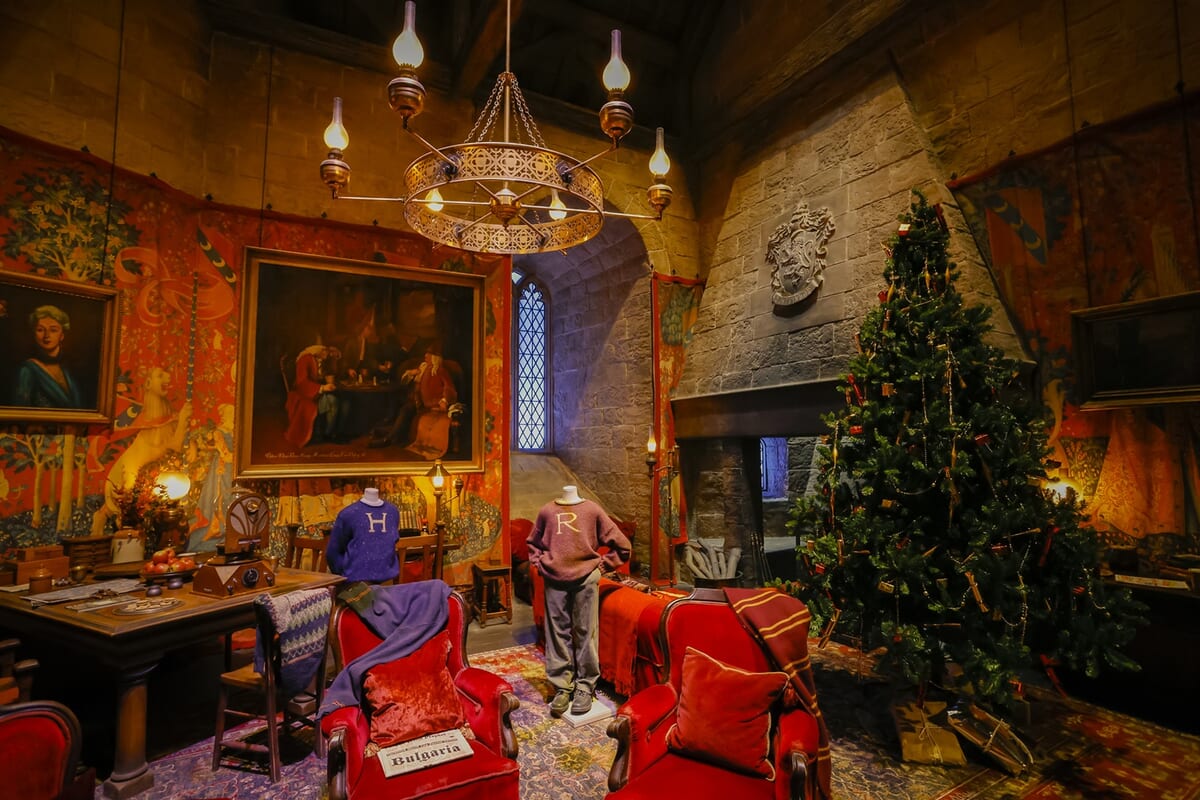 ハリーたちが学生生活を送ったグリフィンドールの男子寮と談話室も、期間限定でツリーが飾られ、温もり感じる空間に!