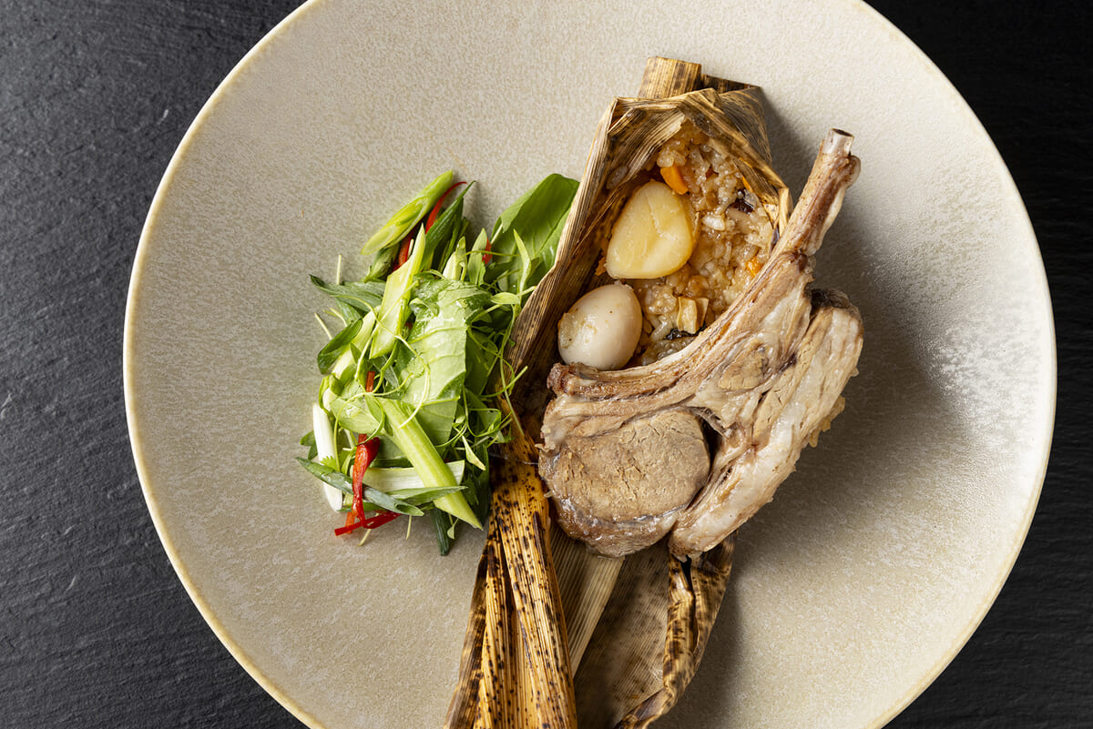 ラムチョップをはじめ、帆立やうずらの卵の丸ごと贅沢な具材が、今までのちまきの概念を覆す一品。