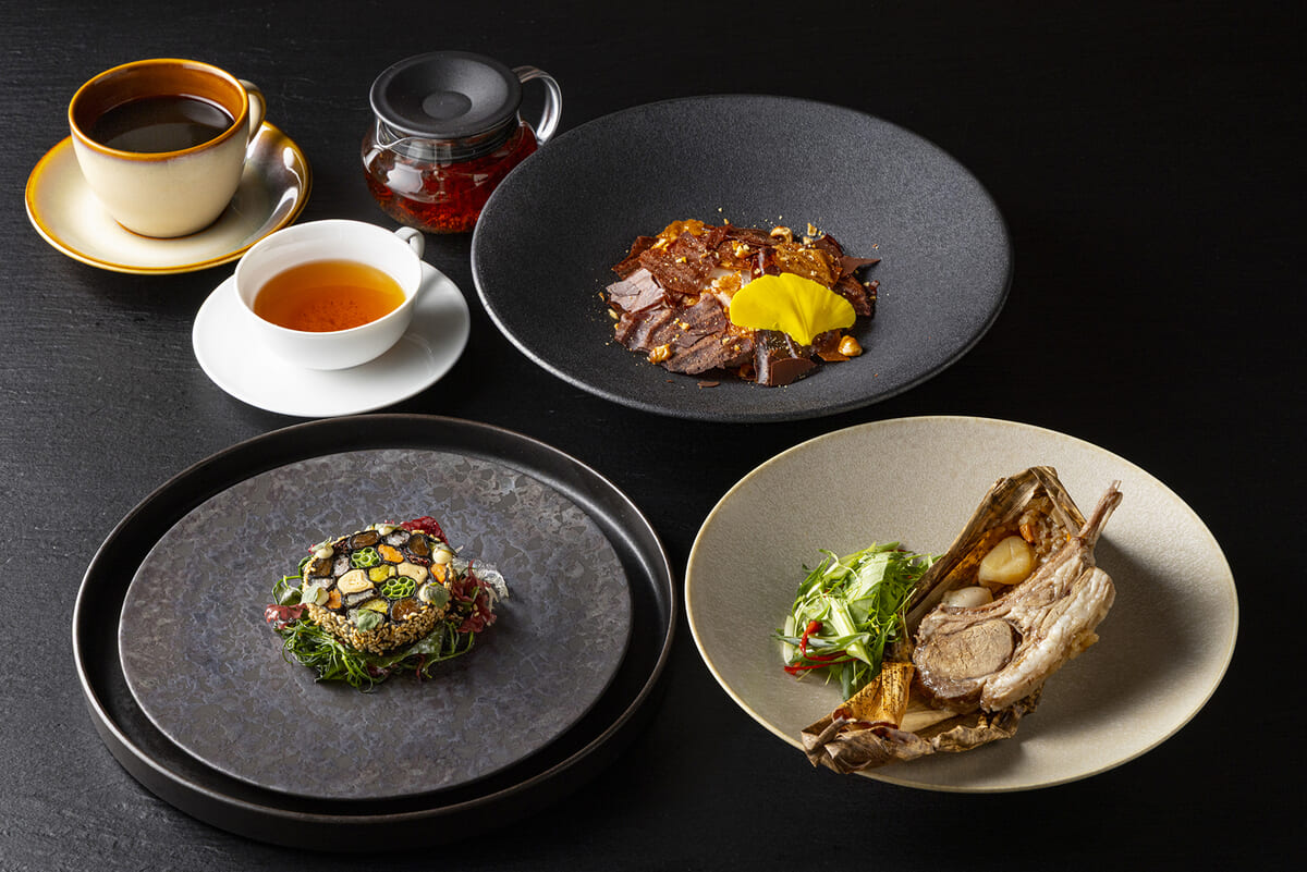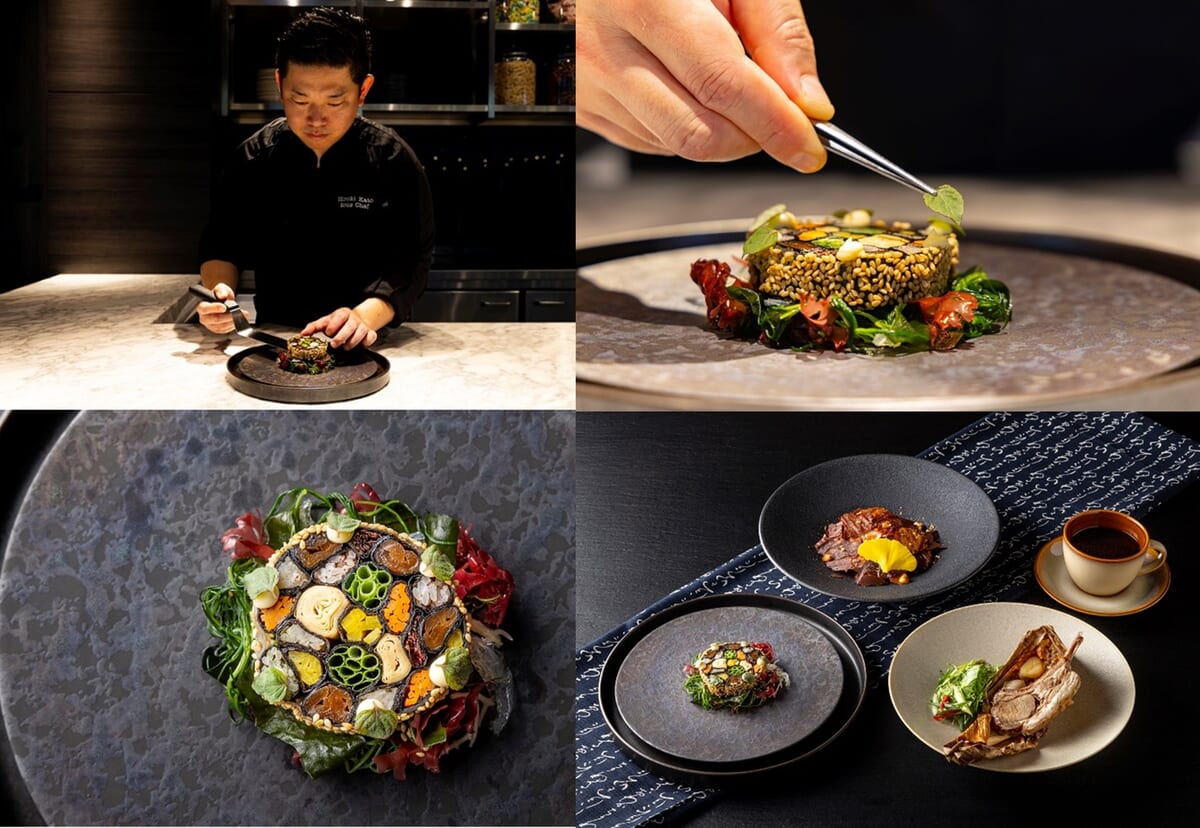 「RED U-35 2025」でブロンズエッグを受賞した「かんぴょうのテリーヌ」が前菜に登場するランチコースや、盆栽を生まれ変わらせた「RE BONSAI」の展示を展開。