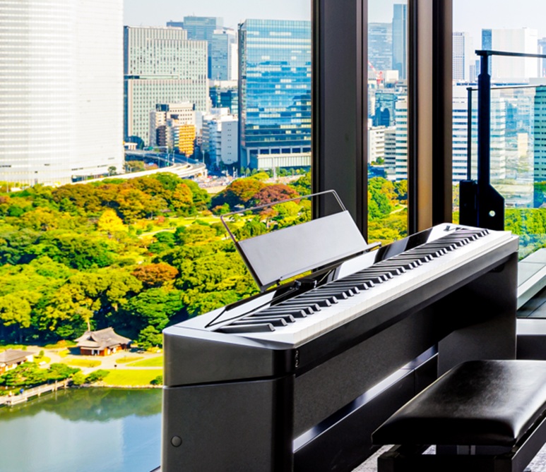この特別な1週間には、通常客室にのみに設置しているデジタルピアノが16階ロビーに登場。