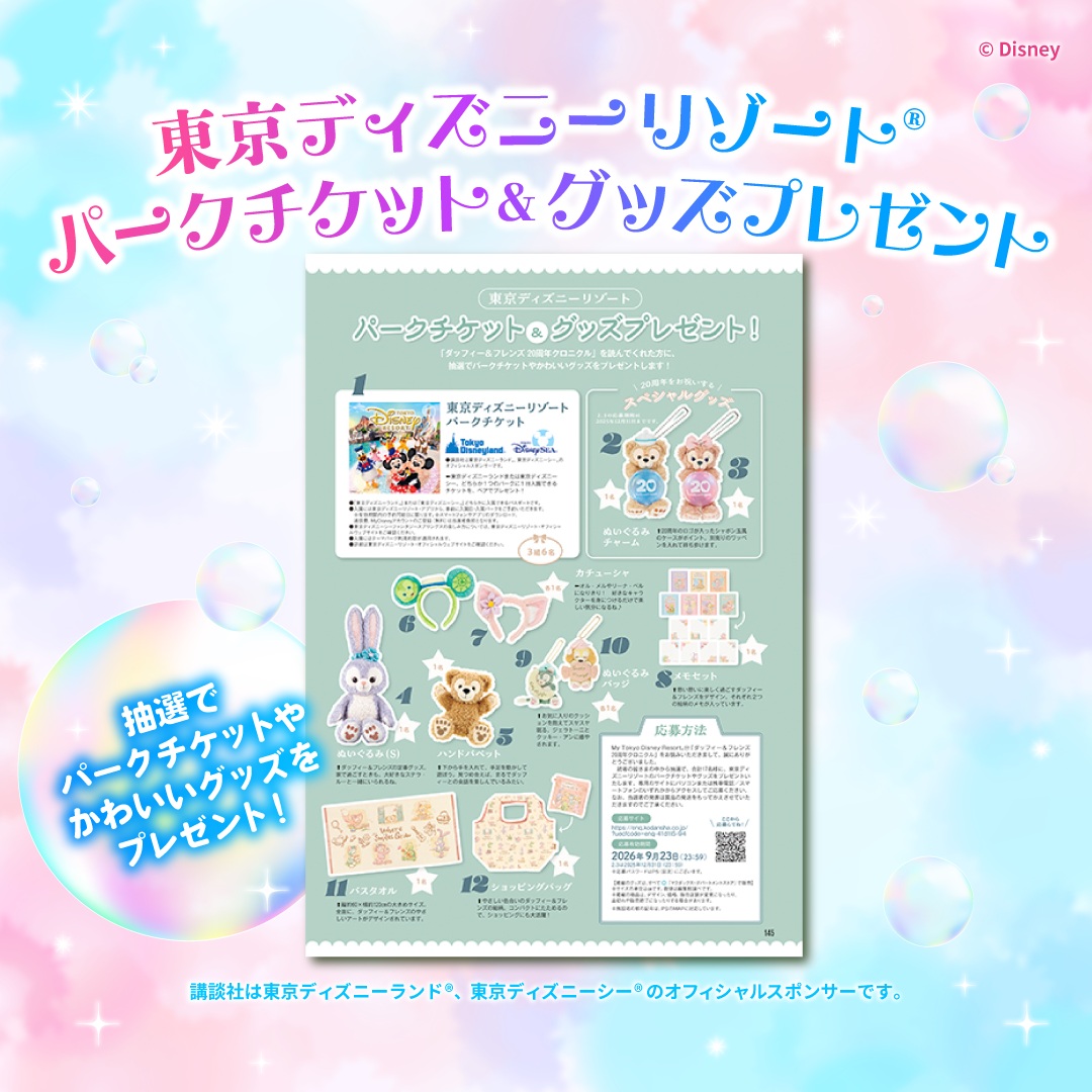 また、掲載されているパスワードで応募すると、東京ディズニーリゾート・パークチケットやダッフィー&フレンズのグッズが抽選で当たるプレゼントキャンペーンも実施されます。