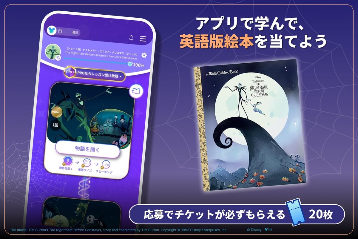 応募条件:「物語を聞く」レッスンを5回実施 - 抽選で5名様に当たる!『ナイトメアー・ビフォア・クリスマス』英語版絵本