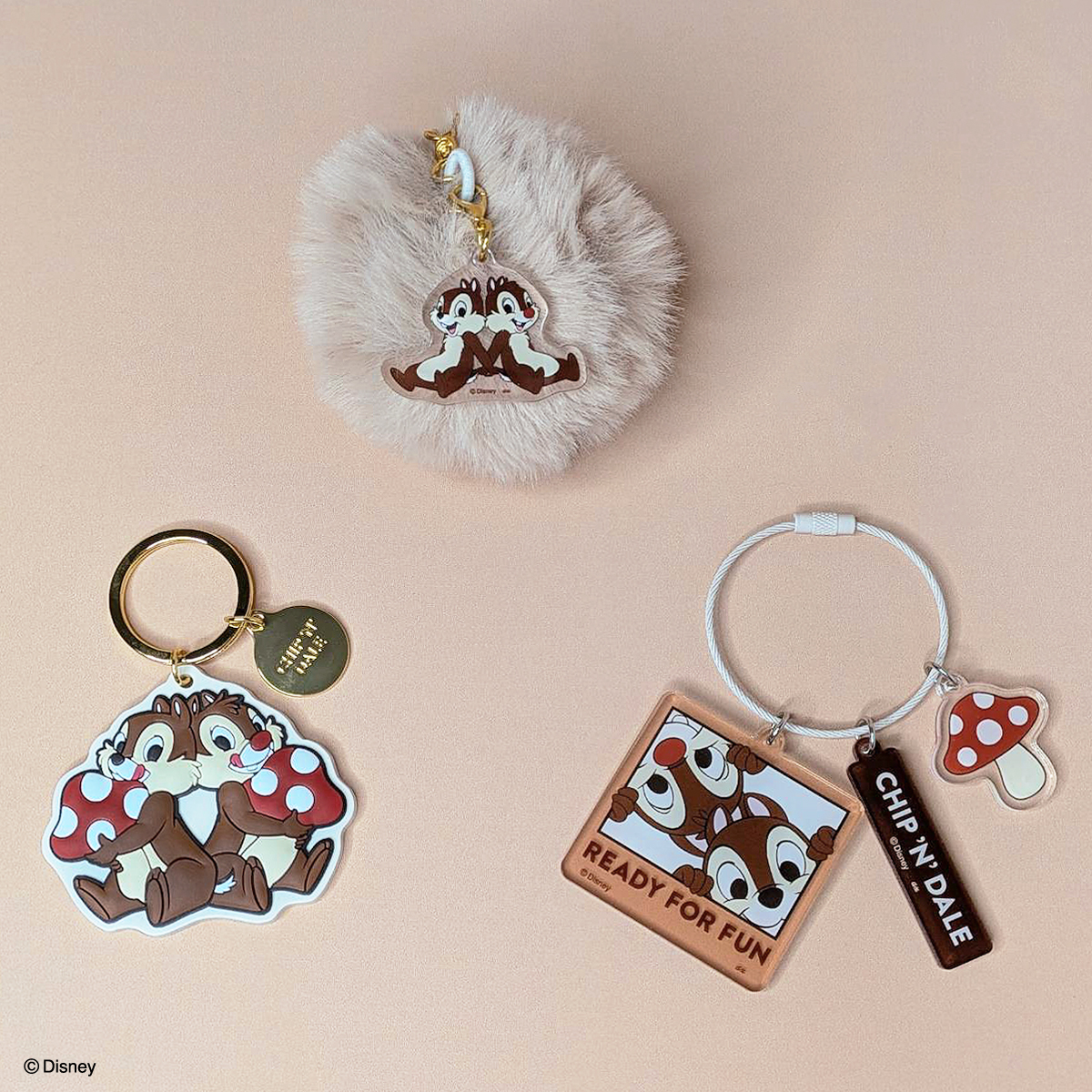 赤いキノコがアクセントになった、愛らしい表情の「チップ」と「デール」グッズが多数ラインナップされます☆