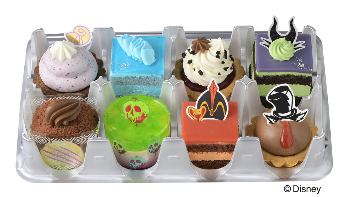 2025年は『アラジン』の「ジャファー」、『三匹の子ぶた』の「ビッグ・バッド・ウルフ」、『ヘラクレス』の「ハデス」、『101匹わんちゃん』の「クルエラ」など、8種のプチケーキがアソートされます。