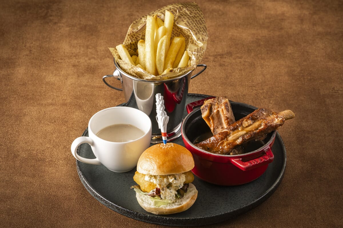 長時間煮込んで柔らかく仕上げた「ベビーバックリブのグリル」や、深い甘みの利平栗を使った濃厚なポタージュ、芳醇なトリュフ風味のフレンチフライも楽しめます!