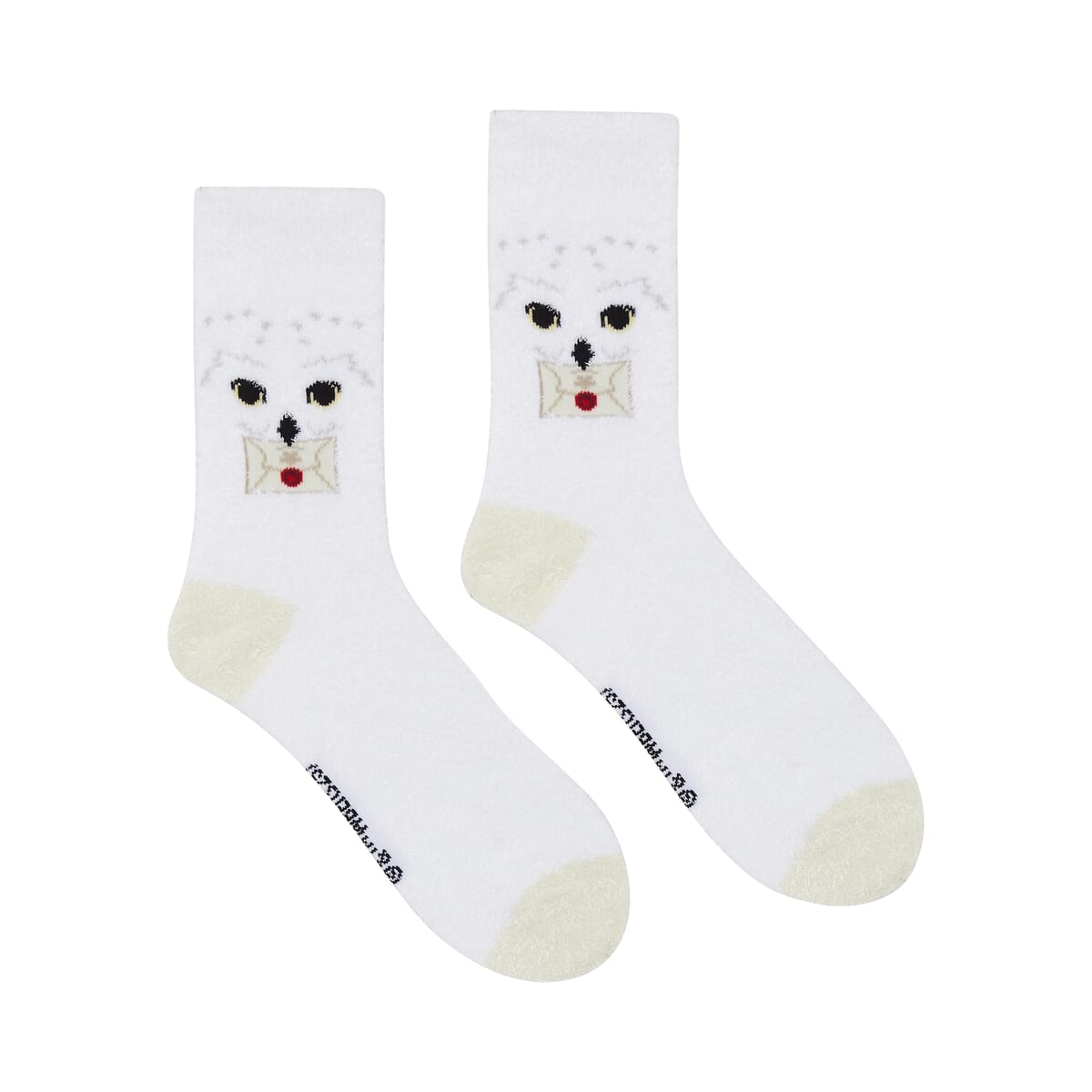 足首部分にはホグワーツの入学許可証をくわえた「ヘドウィグ」のお顔が刺繍されています。