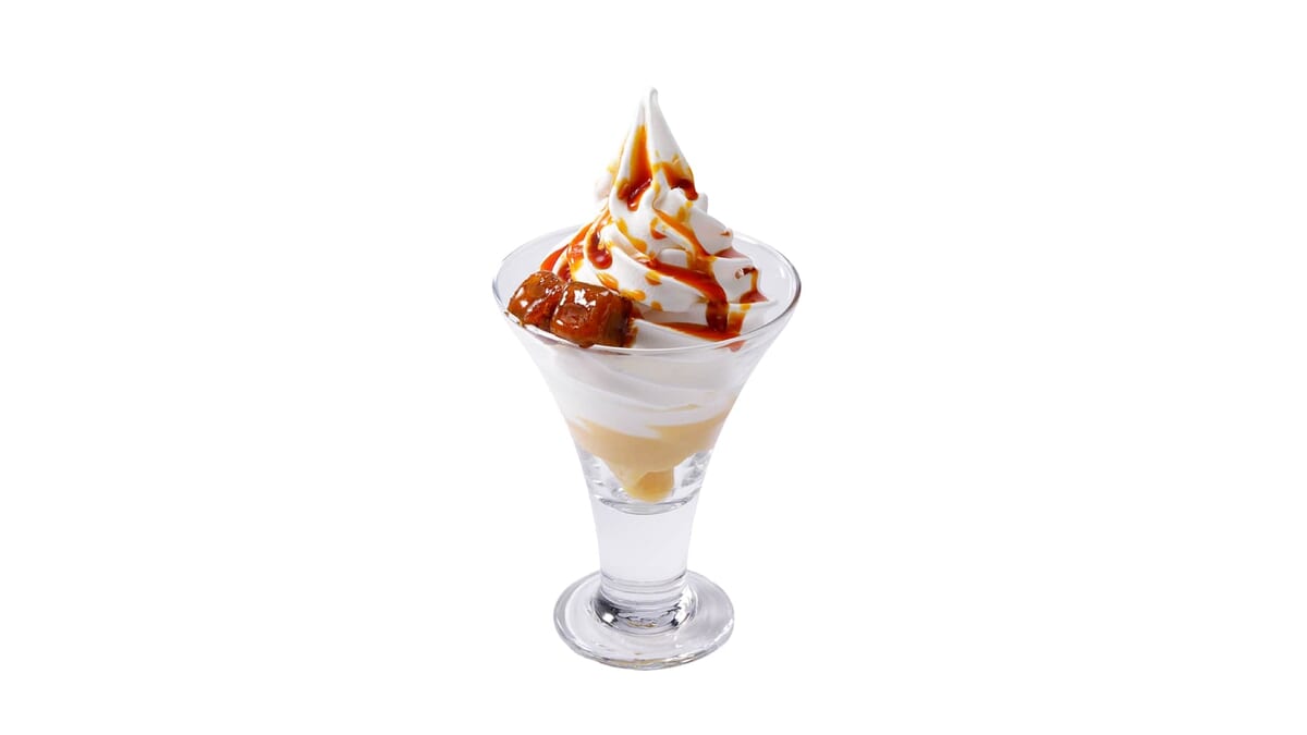 北海道ソフトクリームと香ばしいカラメルを合わせ、トッピングされた大学いもがアクセントになったグラスデザートです。