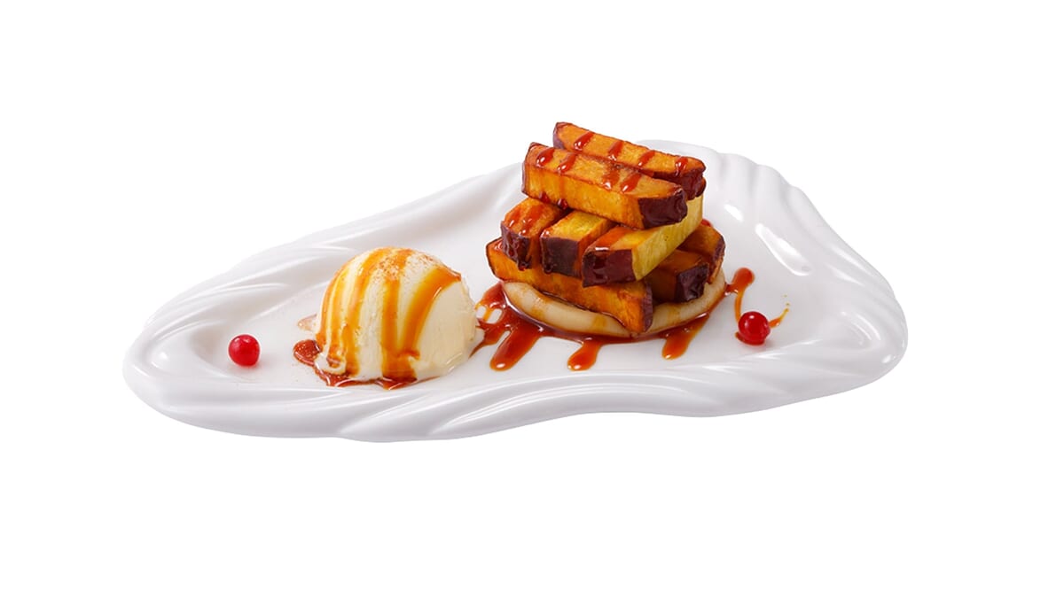 熱々の揚げたてさつまいもスティックに、カスタード風バニラアイスが相性抜群なケーキデザート「フライドスイートポテト」が登場。