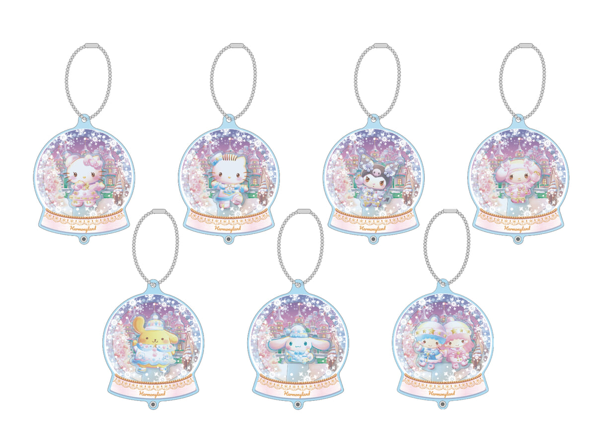 スノードーム風のデザインがおしゃれなアクリル重ねキーホルダー。