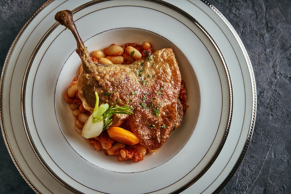 骨付き合鴨モモ肉のコンフィとトゥールーズ風カスレ