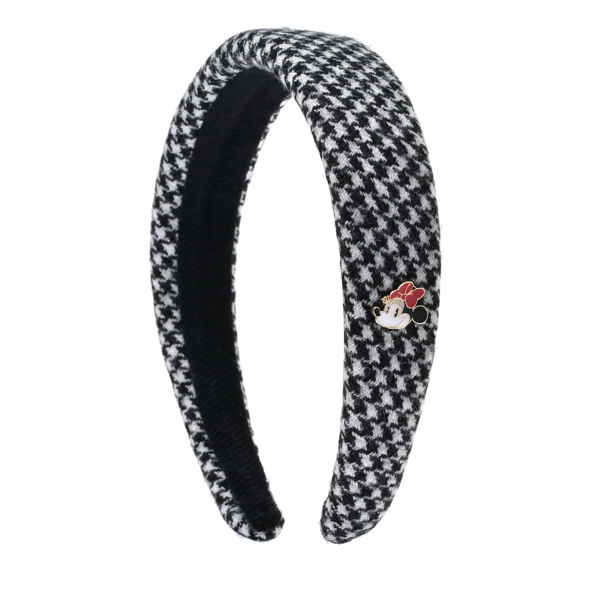 千鳥格子柄ファッションのミニーはぷっくり盛り上がった立体感のあるプリントになっています。