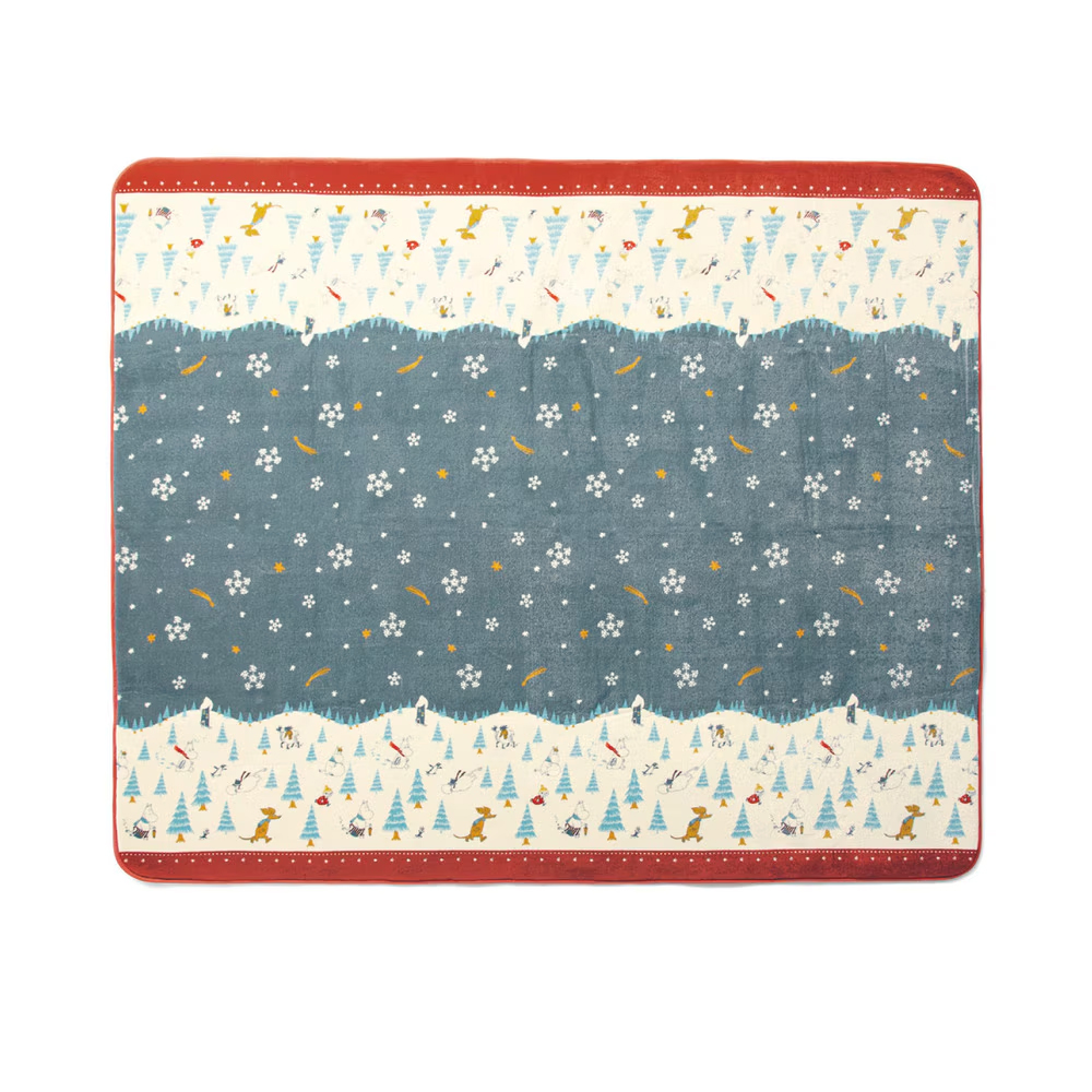 冬の森で遊んでいる「ムーミン」と仲間たちの様子が、細かなプリントで表情豊かに表現されています。