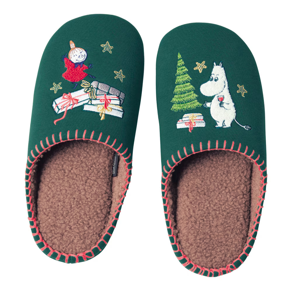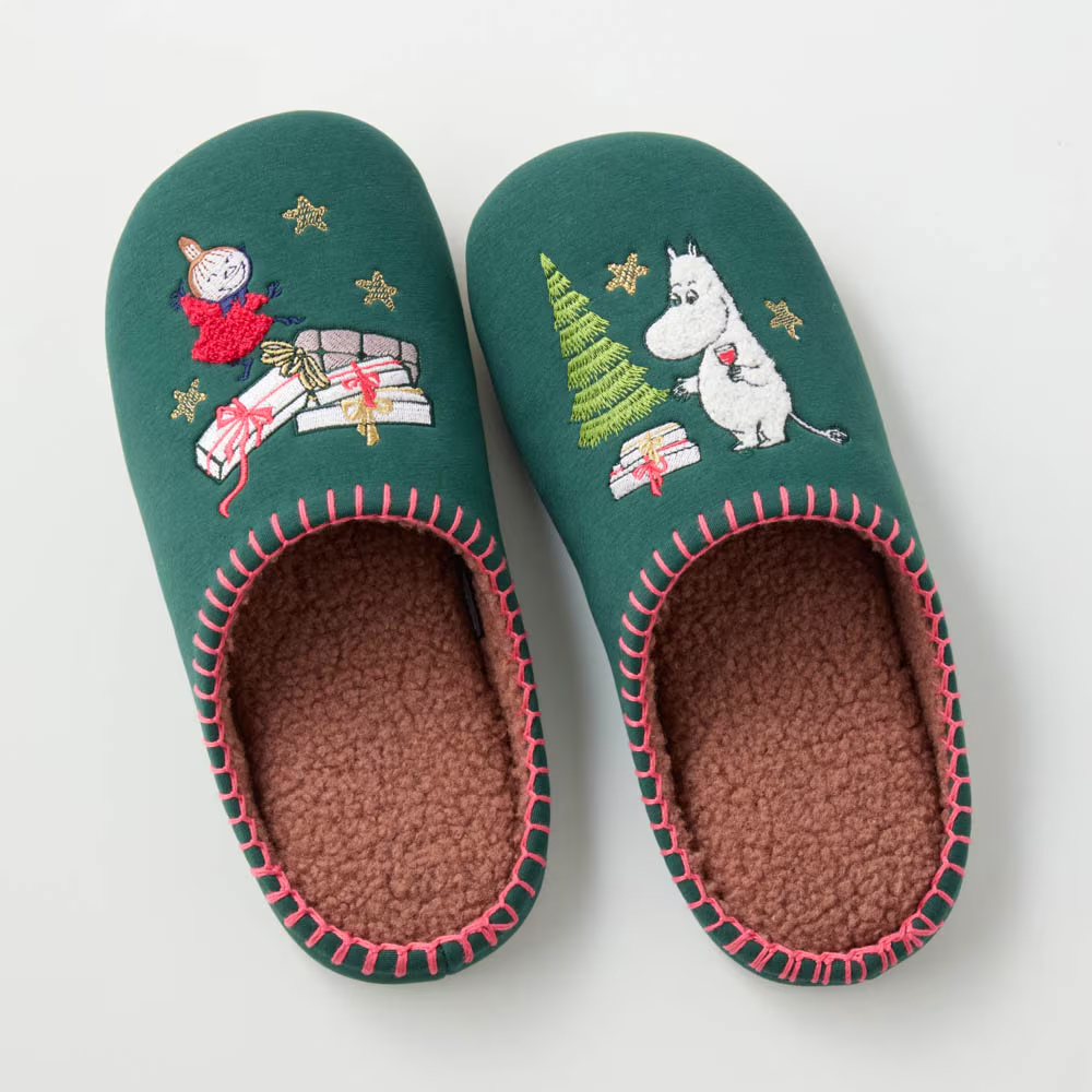 深緑と濃いピンクの配色が、クリスマスシーズンにぴったりの「リトルミイ&ムーミン」デザイン。