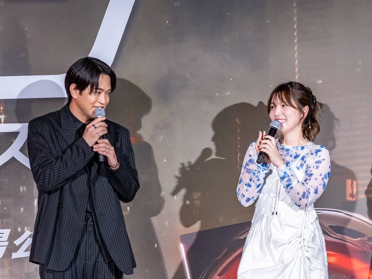 作中では敵対するような関係性ではあるお二人ですが、「仲良くやらせていただいております!」との発言に、会場は祝福モードに。