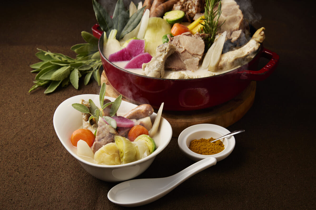ご当地食材がグツグツと煮込まれた薬膳豆乳ポトフや、