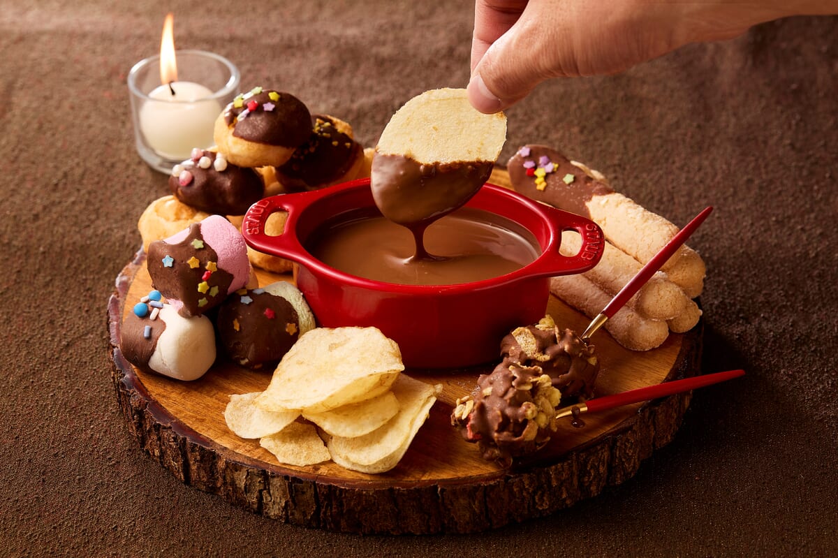 さらに「チョコレートフォンデュ」のコーナーでは、ピスタチオケーキとカダイフを合わせてドバイチョコレート風アレンジも楽しめます。