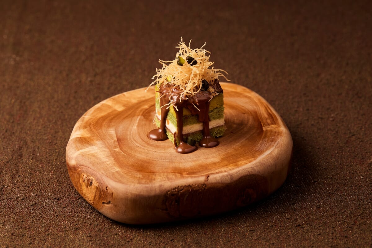 ドバイチョコレート風にアレンジされたピスタチオケーキも登場。