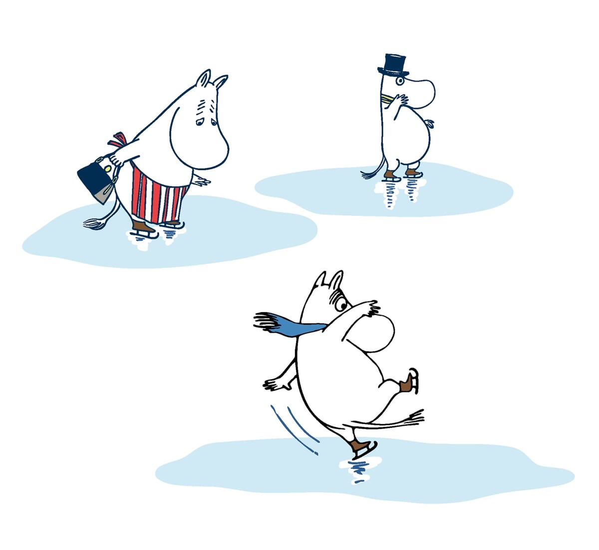 コミックス『やっかいな冬』では、冬眠せずに過ごすムーミン一家が、スポーツ好きの「ブリスク」とウィンタースポーツに挑戦します!