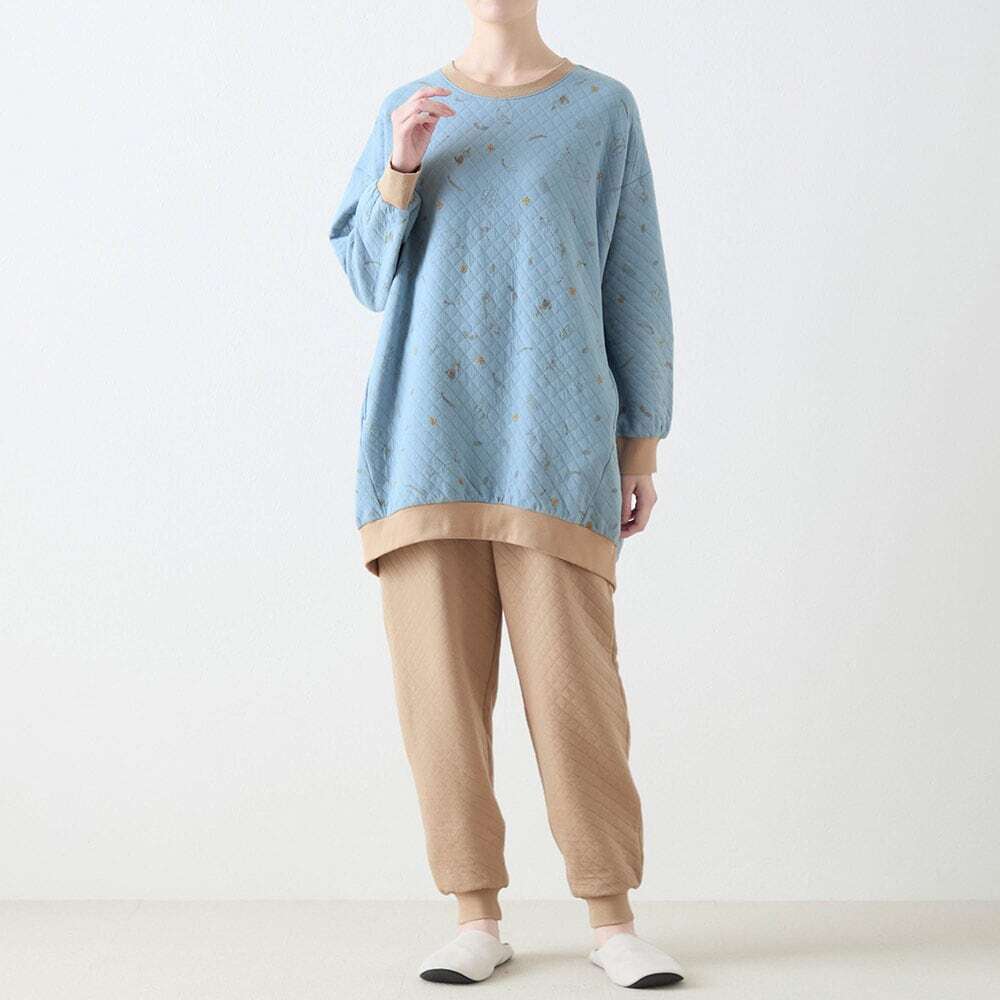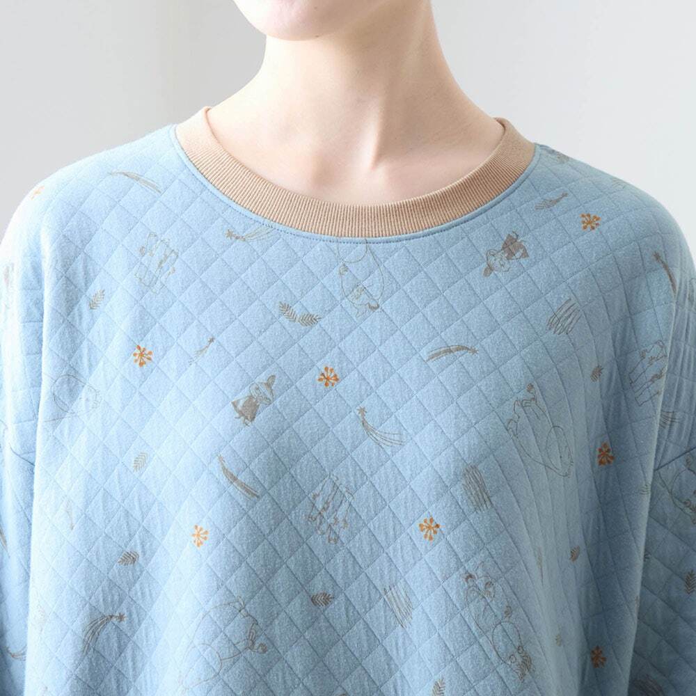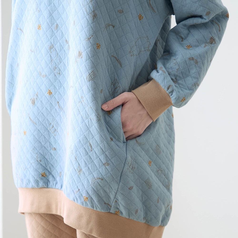 ゆったりシルエットで、秋口から長く着られる「ムーミン」デザインのキルトパジャマ。