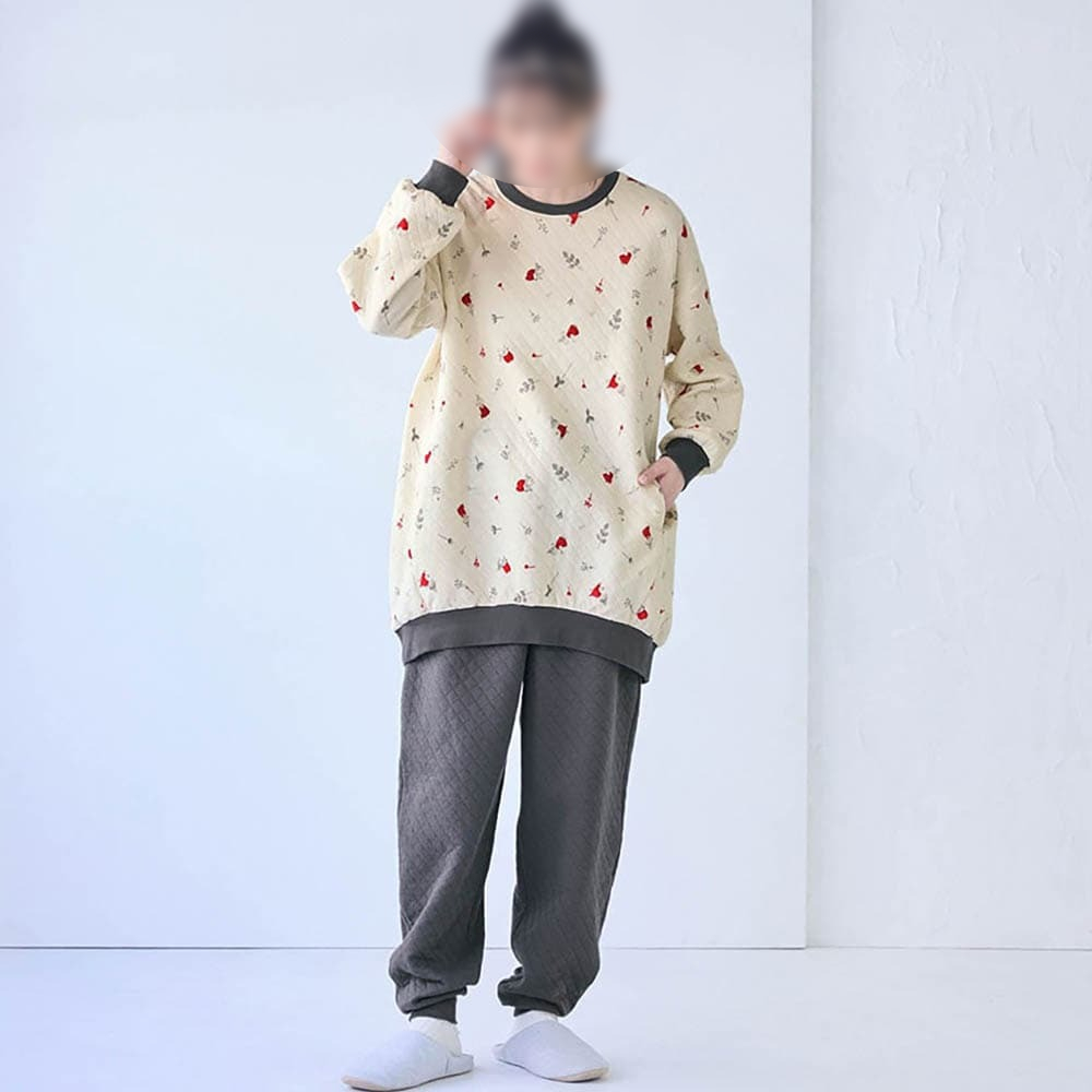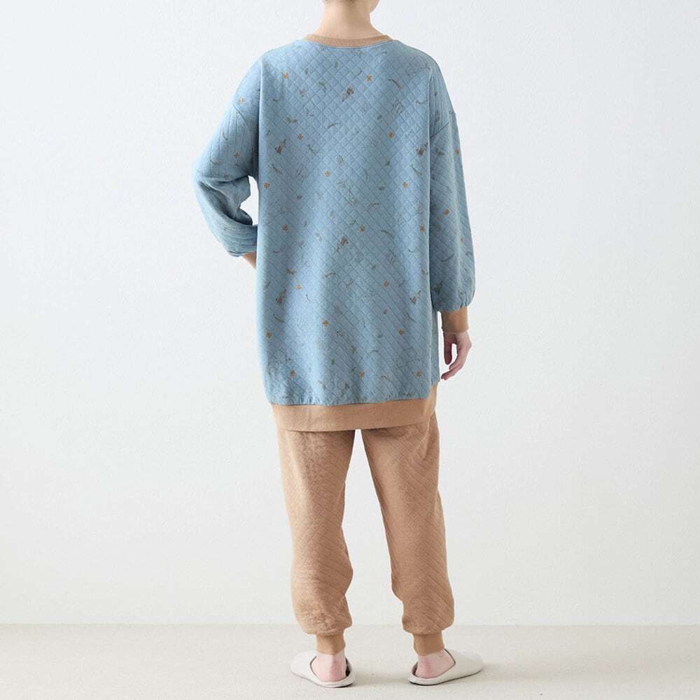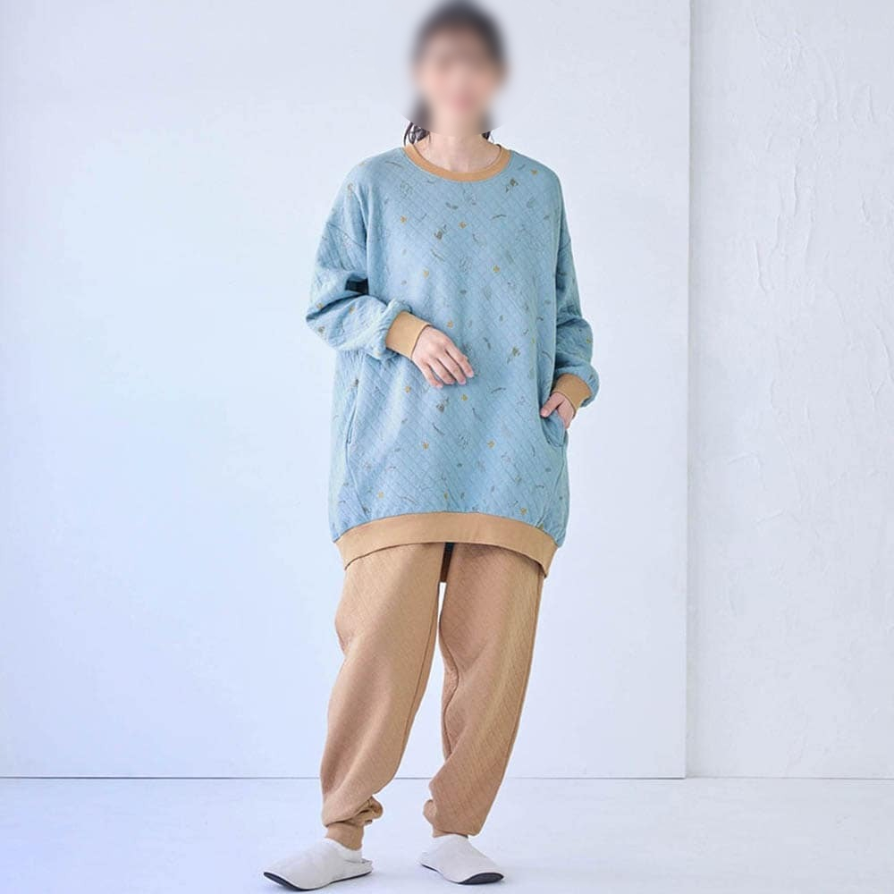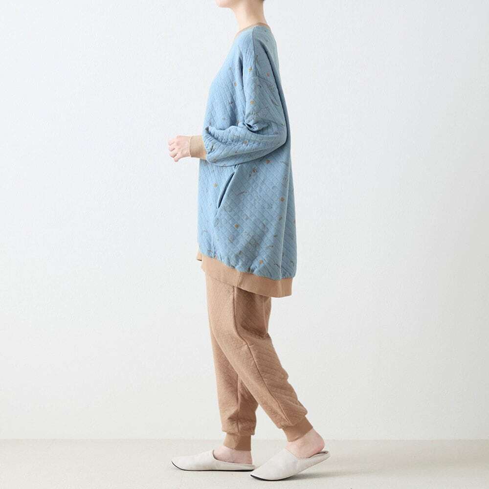 ゆったりシルエットで、秋口から長く着られる「ムーミン」デザインのキルトパジャマ。