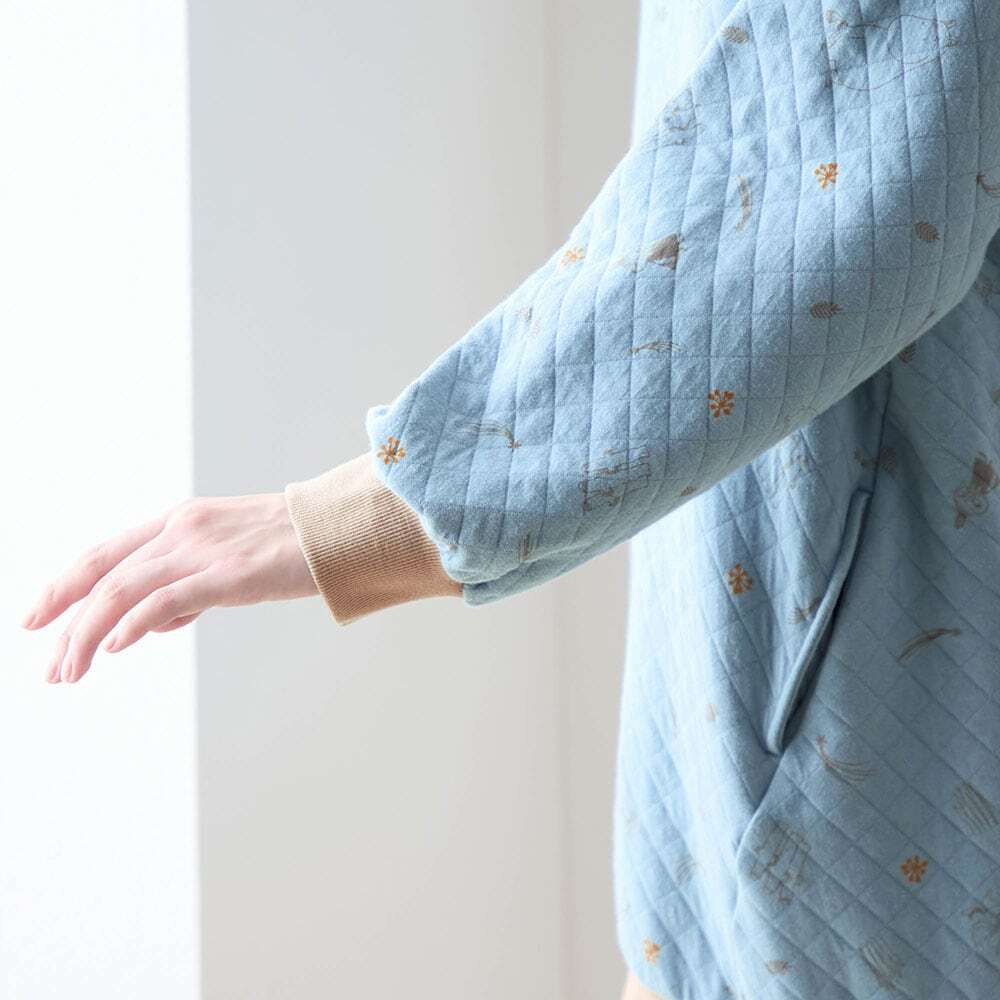 薄めの中わた入りキルトで、お尻もすっぽり隠れる長めの後ろ袖。