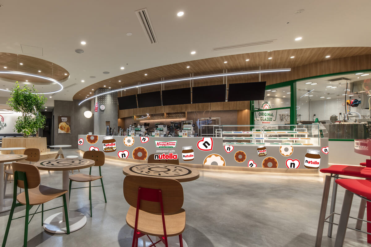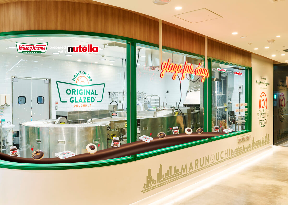 コラボレーション期間中、クリスピー・クリーム・ドーナツ 東京国際フォーラム店が「ヌテラ」の世界観に染まります。