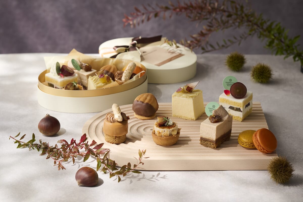 秋の恵みをぎゅっと詰め込み、素材の風味を活かした多彩なスイーツがアソートされています。
