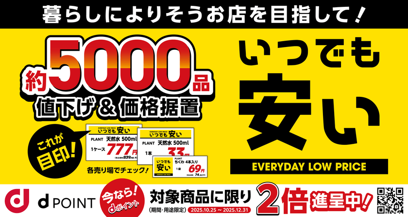 この度、対象商品が約5,000品目となり、2025年10月25日(土)より改めてエブリデイロープライス企画『いつでも安い』として本格的にスタートします!