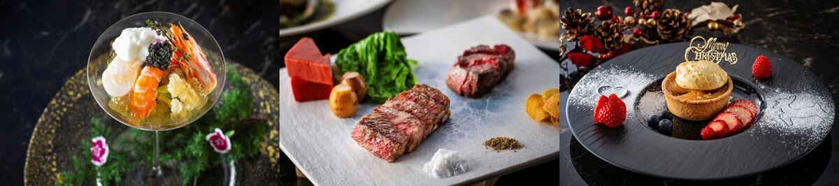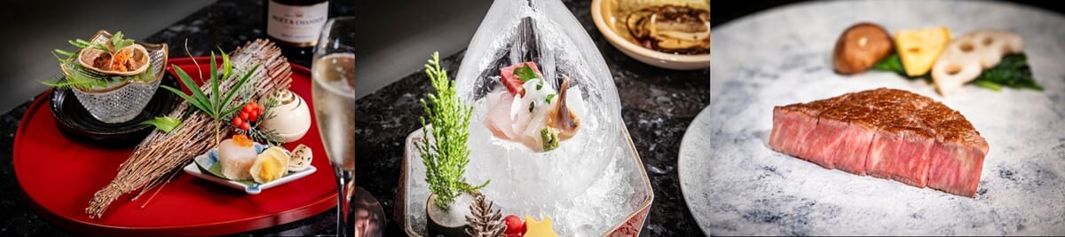 鉄板焼「さがみ」や、日本料理「木の花」内の鉄板割烹「山吹」、中国料理「彩龍」では特別なディナーをラインナップ。