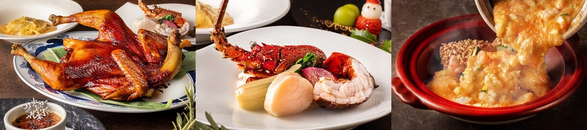 新料理長の南が腕を振るう、中国料理「彩龍」のクリスマスディナーコースは、厳選した山口県産「長州黒かしわ鶏」がメインに登場。