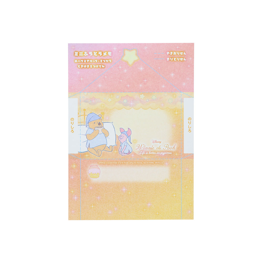 パジャマに着替えて、寝る支度をする「くまのプーさん」が表紙のメモミニ。