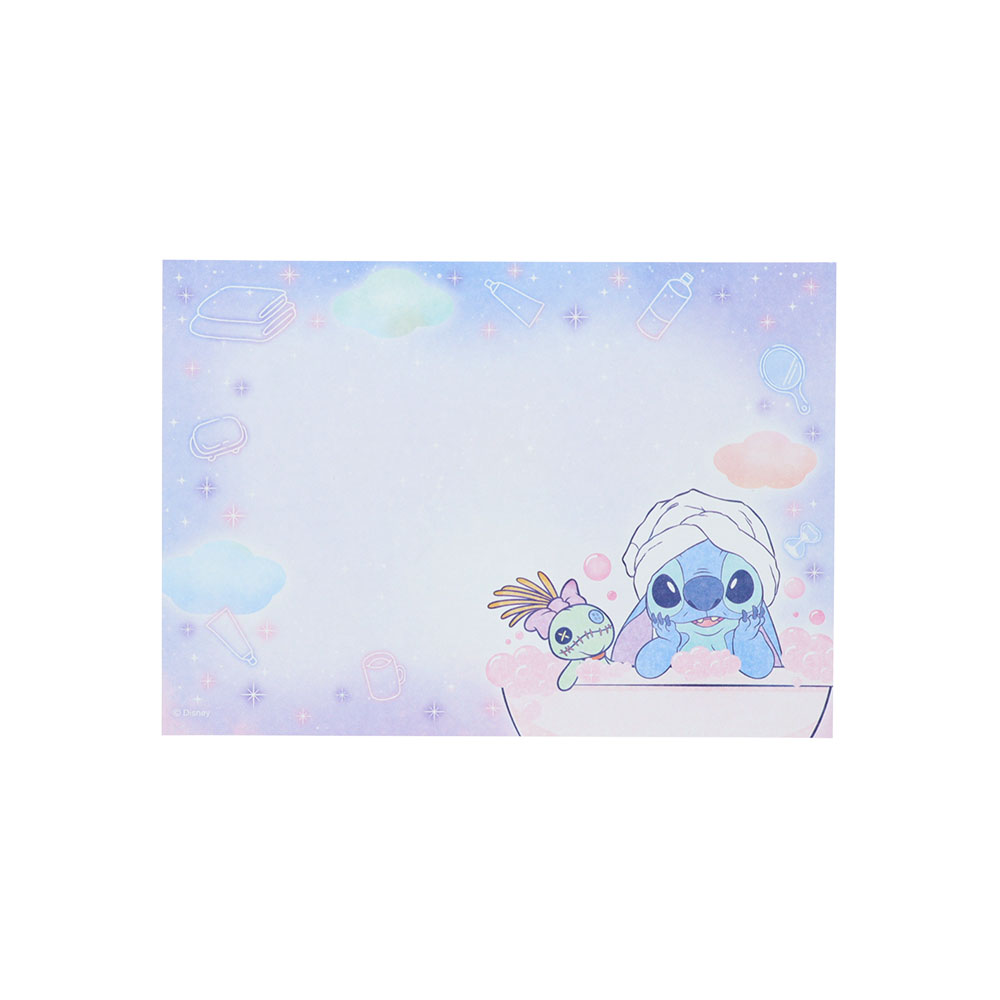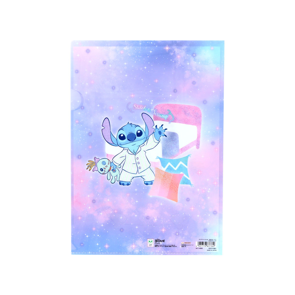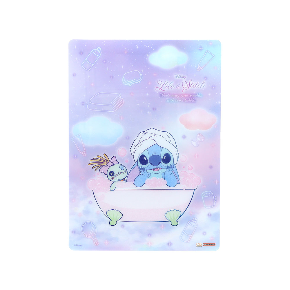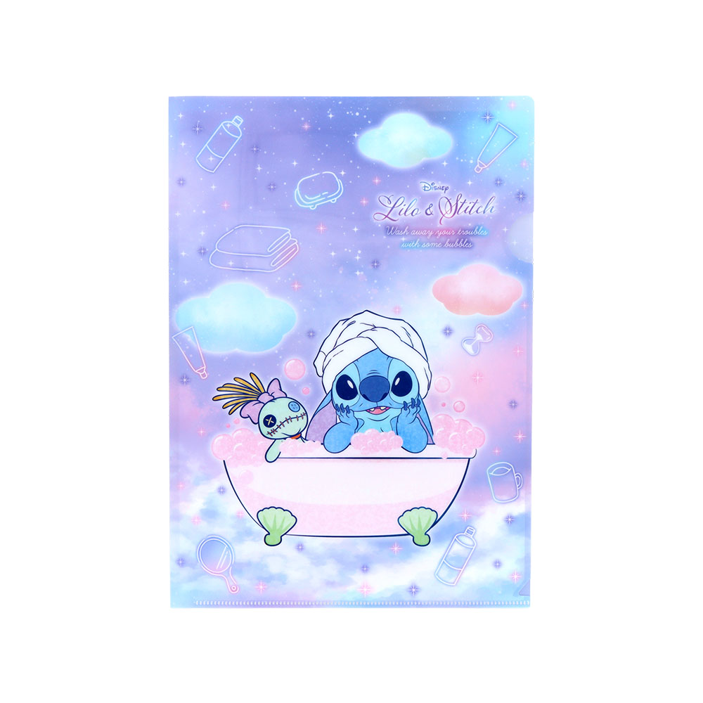 泡のお風呂で夜のリラックスタイムを過ごす「スティッチ」のクリアファイル。