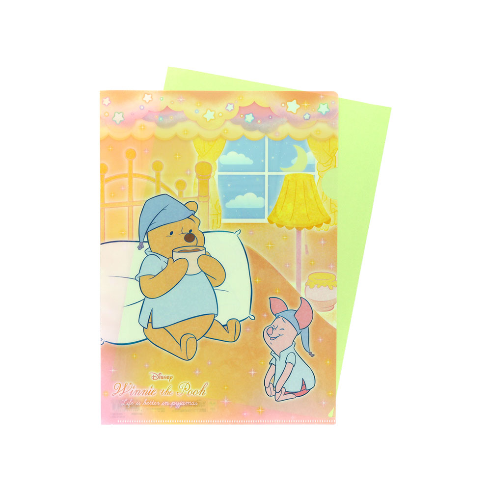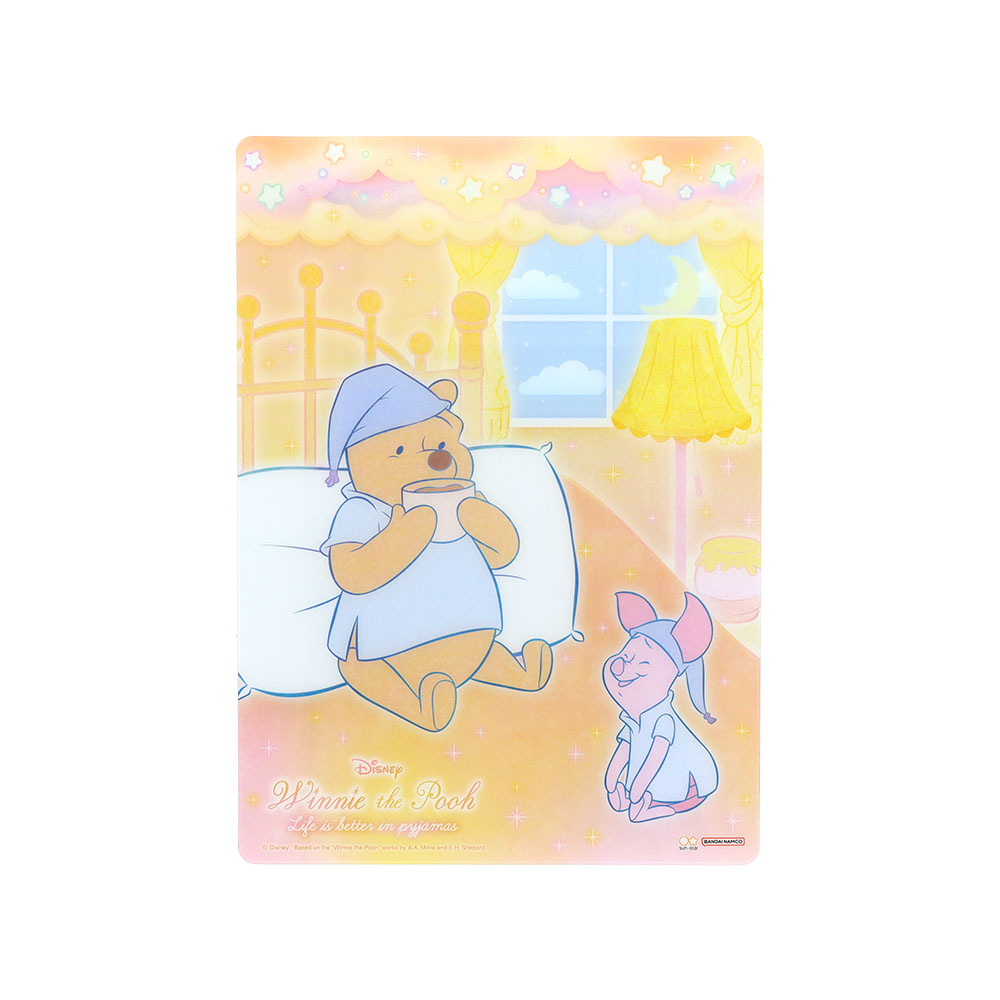 「ピグレット」と一緒にくつろぐタテ型デザインと、眠そうにあくびする「くまのプーさん」を描いたヨコ型デザインが入っています!