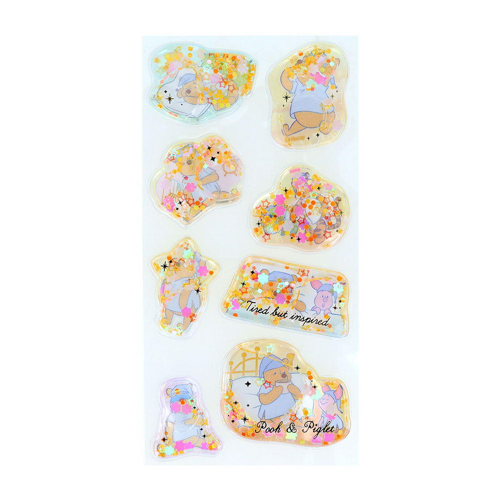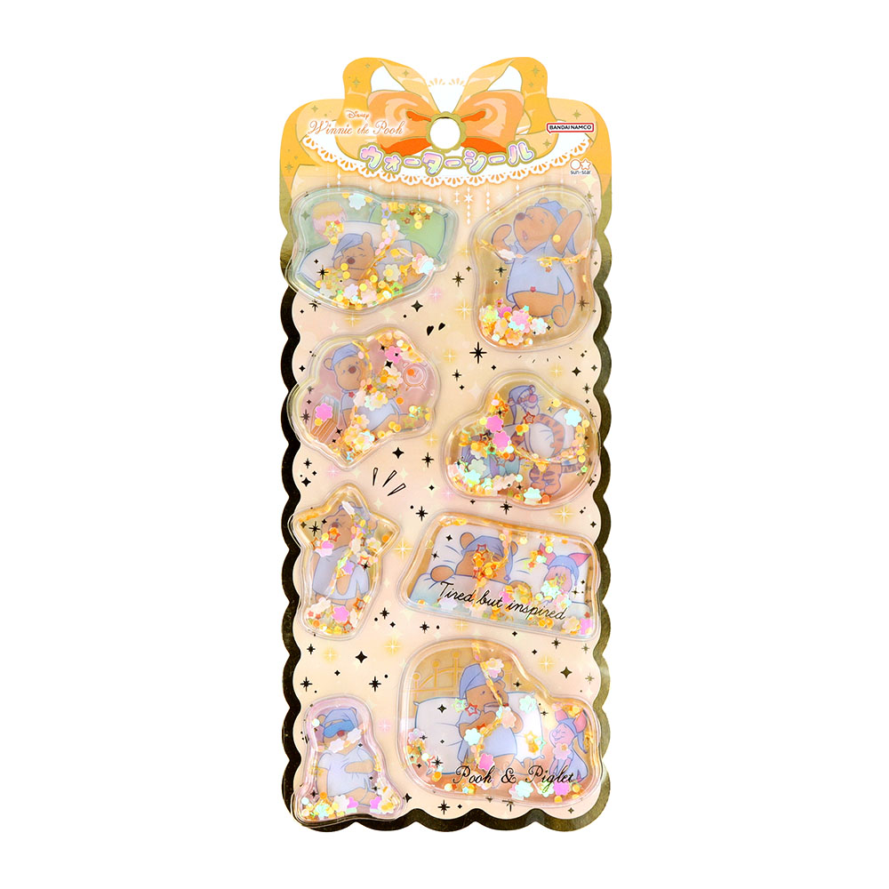 夜のリラックスタイムを過ごす「くまのプーさん」に、ゆらめくスパンコールをプラスしたウォーターシール。