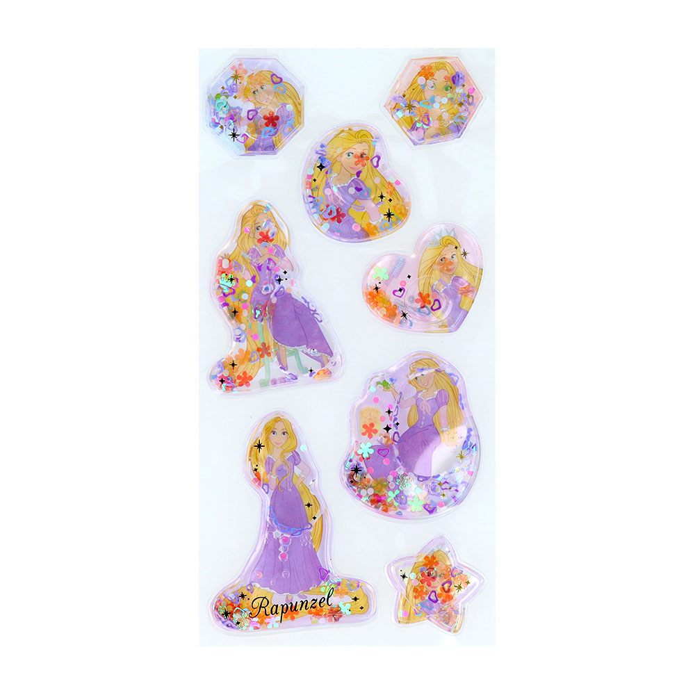 魔法の髪を持つ「ラプンツェル」のいろいろなシーンを切り取ったシール。